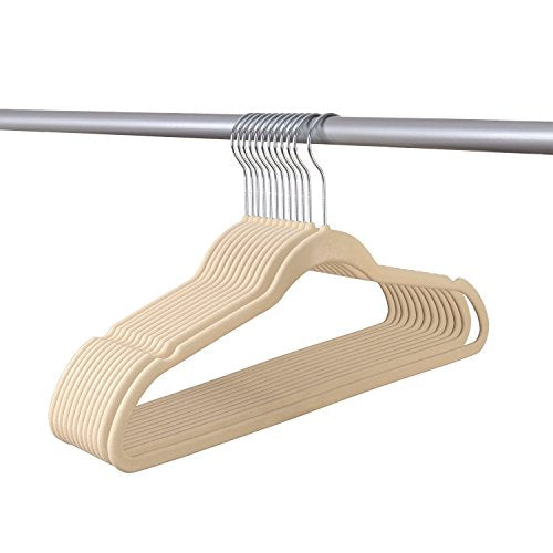 NO SLIPPING - Our hangers feature a non-slip velvet material that holds clothes in place without falling or sagging. The contoured shoulders keep clothes shapes while the additional notches help to keep accessories in place. SPACE SAVER - The hanger's slim and sleek design allows you to maximize space in your closet while keeping your clothes secure while being stored. The durable and sturdy design is able to hold clothes up to 10 pounds.